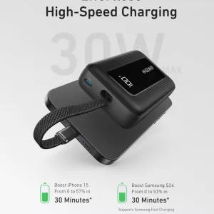 بطارية زولو من أنكر (30 واط /10000 مللي أمبير) مع كيبل تايب سي مدمج| Anker Zolo Power bank (30W/ 10000mAh) with built-in typeC cable