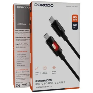 كيبل مضفر تايب سي إلى تايب سي من بورودو | Porodo LED Braided USB-C to USB-C Charging & Data Cable