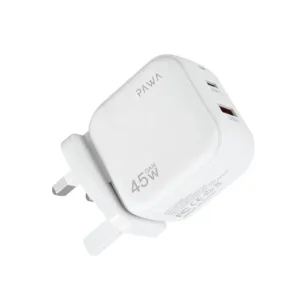 شاحن جداري ثنائي المخرج بتقنية الجان من باوا | Pawa Quick GaN 45W With PD+QC Port