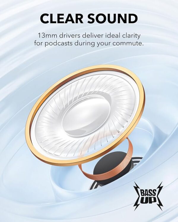 صوت ممتاز: مزودة بمحركات ديناميكية 13 مم وتقنية BassUp لجودة صوت محسنة، مثالية للموسيقى والبودكاست والمكالمات.