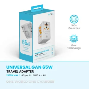 محول السفر بتقنية الجان من باوا (65 واط) | Pawa Universal Gan 65W Travel Adapter