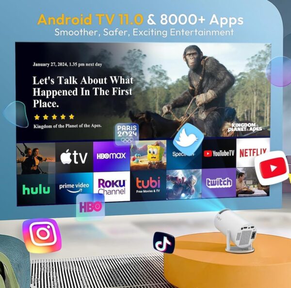 وضوح عالي الوضوح بدقة 4K و1080P: استمتع بصور مذهلة مع جهاز عرض سمارت باري الصغير، يدعم دقة 4K و1080P للحصول على صور نابضة بالحياة وواضحة للغاية.