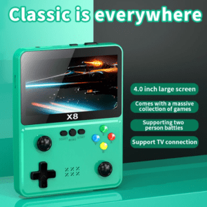 وحدة تحكم ألعاب محمولة جديدة: تمت ترقية أحدث وحدة تحكم ألعاب محمولة باليد X8 لعام 2024 من حيث المظهر والوظيفة. شاشة LCD مقاس 4.0 بوصة بألوان ناعمة ودقيقة تقلل من إجهاد العين. دعم 10 محاكيات، ومجموعة متنوعة من الألعاب الشائعة التي يمكنك تنزيلها، بما في ذلك ألعاب الأركيد القديمة، والألغاز، والأركيد، وإطلاق النار، والسباق، والقتال، والمغامرة، وما إلى ذلك.