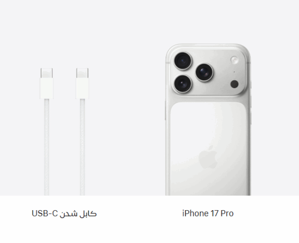 شحن لغاية 50% خلال 20 دقيقة مع محول طاقة بقدرة 40 واط أو أعلى (متوفر على حدة) مقترن مع كابل شحن USB‑C